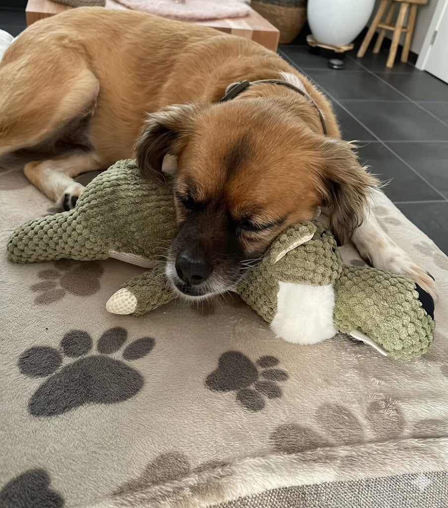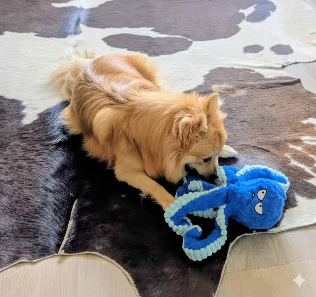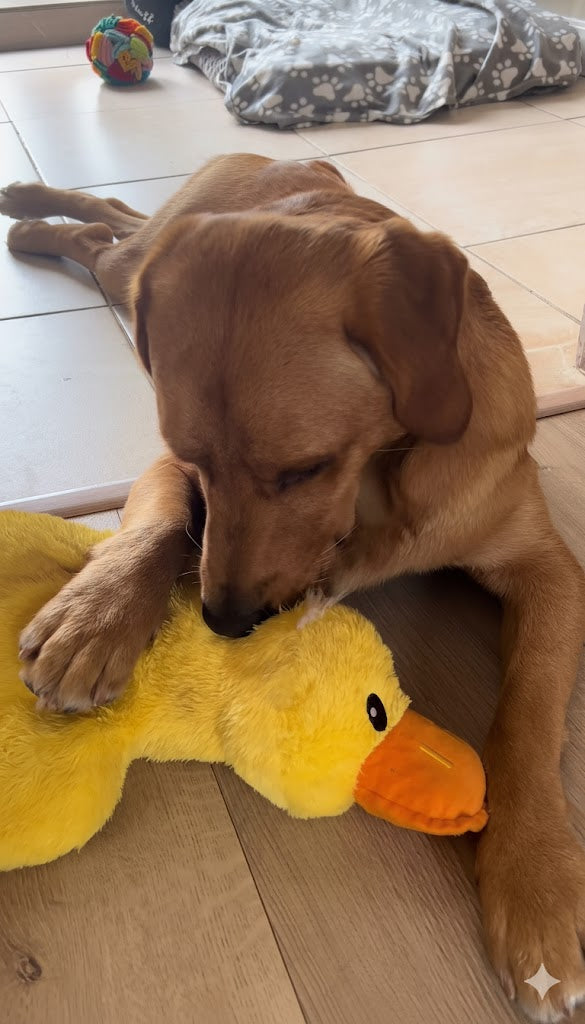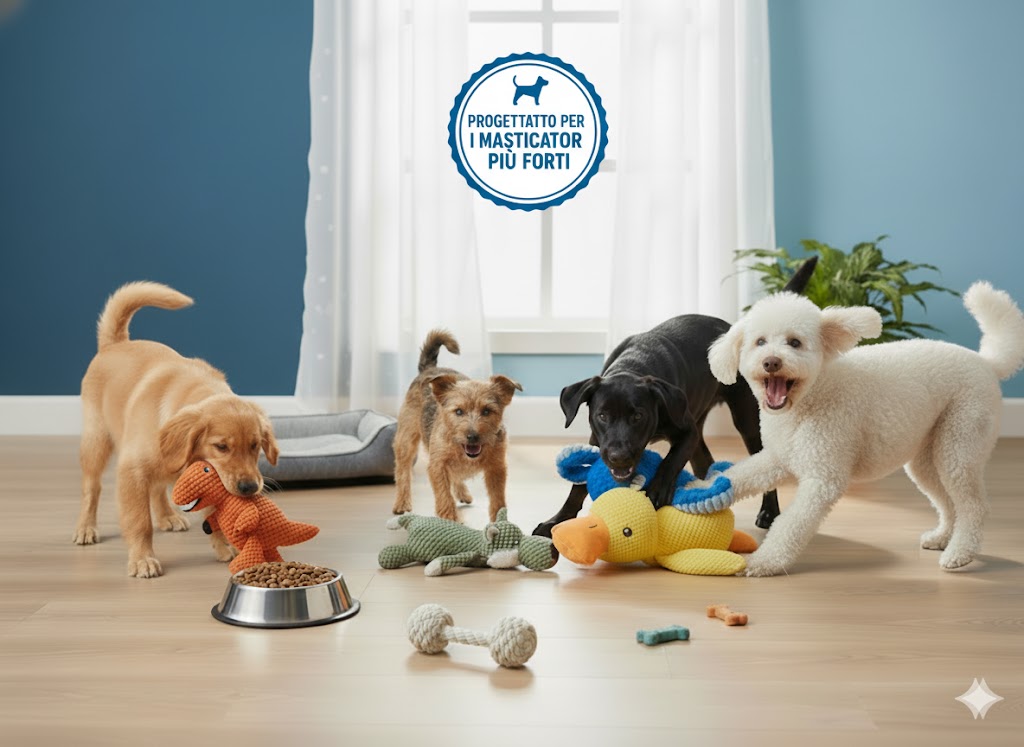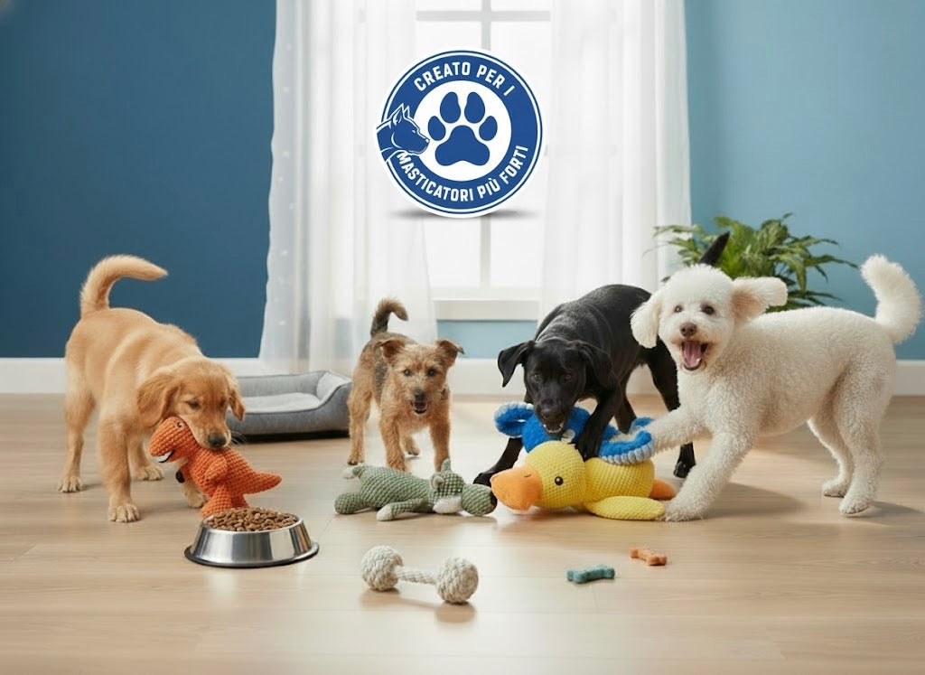 "I nostri MasticToys ultra resistenti sono molto più di semplici giocattoli: sono compagni di gioco intelligenti progettati per intrattenere il tuo cane con suoni che catturano e mantengono la sua attenzione. Ogni volta che il tuo cane morde, scuote o insegue il pupazzo, suoni coinvolgenti ad alta frequenza si attivano, risvegliando il suo istinto naturale di gioco e trasformando ogni sessione in un'esperienza entusiasmante